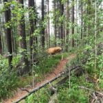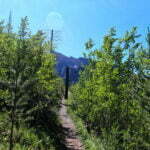 Not everyone at Lake Minnewanka is a waste of carbon taking up all of the paths walking slowly without letting anyone pass, talking loudly to drown out the yipping dogs as they drag huge trailers full of chips and soda to sit by a lake and look at it through their phones, but to be a nuisance, not everyone has to be. I did not stop to look at the many amenities of Minnewanka, I did not check out the menu of the artfully-branded snack shop or check out the boat dock or… any of the other things, I only noted those two options because I walked past them, as quickly as I could, following the signs towards the backcountry trailhead, where things immediately got better.