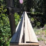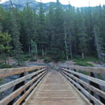 Past Stewart Canyon the trail is still easy but recognizably backcountry-y, with level fields of easy scree and a narrower track through the woods. There is one hill. It is dry, and mostly away from the lake, so few good views. There were still plenty of hikers, day- and otherwise, and they were all courteous and willing to be passed. One devours miles so easily that at the second and last bridge, a very practical but single-lane affair, I was part-way across when someone rampaging towards the other side got on without looking through sheer momentum. I shouted “hey there!” across the creek and he stopped on the threshold, giving me an “easy does it” when I dismounted at the end to pretend he’d just been checking I could operate a bridge. I admired his conversational recovery and didn’t begrudge him his hurry. Getting to Alymer Junction campground really is a walk in the park.
