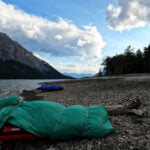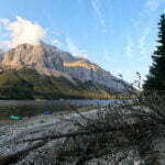 The alpine hikers must have had a hard time because that evening, before most were back, the fiercest wind I’d ever felt in the Canadian Rockies outside of a mountain pass hit, blowing off the lake straight down my throat. The relaxation hammock spun and warped like a sheet in the washing machine and the tents hammered like big guns. It was a lot of weather. Luckily I hadn’t camped on the beach after all.