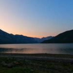 Being a) a non-driver b) who is anti-airplane and c) somewhat cheap, I was taking the bus from Banff home to Vancouver. I had to catch the bus at ten, which meant catching the first Roam Transit bus of the day from Lake Minnewanka at 8:30. Based on my time on the first day that meant two hours of hiking, and allowing half an hour for bears, washing up, and actually finding the bus stop, that meant leaving at six. An hour is a comfortable time for me to pack up camp, especially since I was being a good boy and storing my food in the bear boxes way down in another time zone, so I woke up and started packing at five. There was plenty of light so nobody was awoken by my headlamp, but it’s only possible to be so quiet however much I wanted my fellow campers to go uninterrupted.