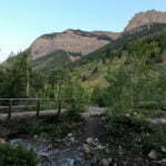Immediately! That was a pleasant surprise, because the “backcountry trailhead” at Lake Minnewanka includes several hikes well within the reach of anyone capable of contemplating the word “hike.” The trail was huge and broad, well-beaten, and attracted many. As far as the huge bridge over the Cascade River at Stewart Canyon, it is only out of convention that it should be called “backcountry” at all, and it is within the pleasant-morning-stroll capabilities of anyone with a reasonable number of working legs. However, it was proof that popular and annoying can look like synonyms but aren’t. Simply by virtue of requiring a walk it was difficult to bring an entire skid of chips on, it attracted nicer people. Some were obviously novices, some definitely were not, and none were jerks. There was no solitude, but the time was pleasant. Probably six people had stopped for a break at the bridge, so I didn’t hang around to investigate that large, interesting, backcountry structure, but that was okay. I’d catch it on the way back.